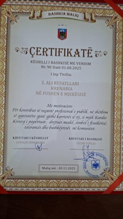 Bashkia Maliq ka vlerësuar tre personalitete të spikatura për kontributin e tyre në fusha të rëndësishme të shoqërisë, duke u akorduar tituj nderi.